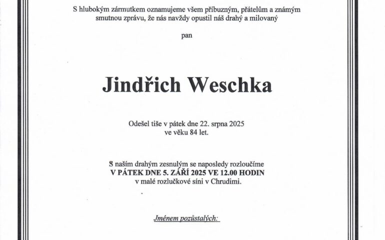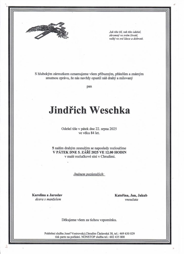 Aktuality KlubyZemřel Jindřich Weschka Srpen 31, 2025 Zemřel Jindřich Weschka, dlouholetý člen tenisového klubu TC Chrudim a v minulosti člen VV VČTS.